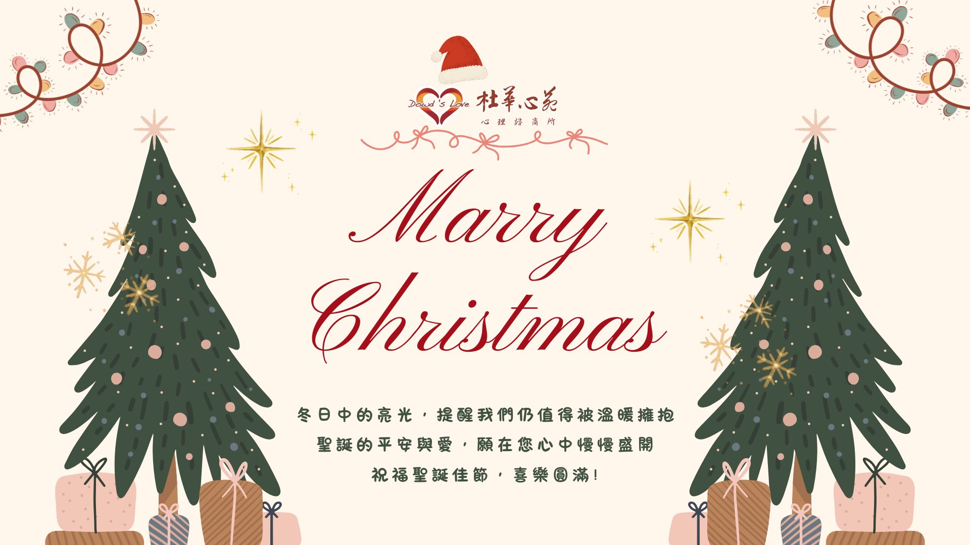 聖誕佳節 平安喜樂  24 12 月, 2025 dowdslove No Comments 在這個歲末時刻, 願聖誕夜成為您溫柔的港灣,讓不安的心得以停靠、休息。 冬日裡的亮光, 提醒我們—— 即使身處低谷、面對動盪,也依然值得被溫暖擁抱,慢慢找回心的平靜。 願聖誕的平安與愛, 在您的心中慢慢盛開, 成為陪伴您前行的溫柔支持。 祝福您 聖誕佳節,喜樂圓滿 最新消息 杜華心苑心理諮商所, 聖誕節